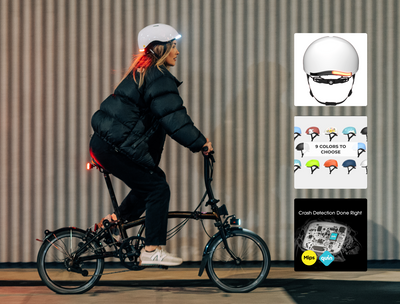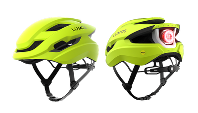 Helmet lights flash in sync with other Lumos bike lights, creating a highly visible display that boosts the cyclist's road presence.
